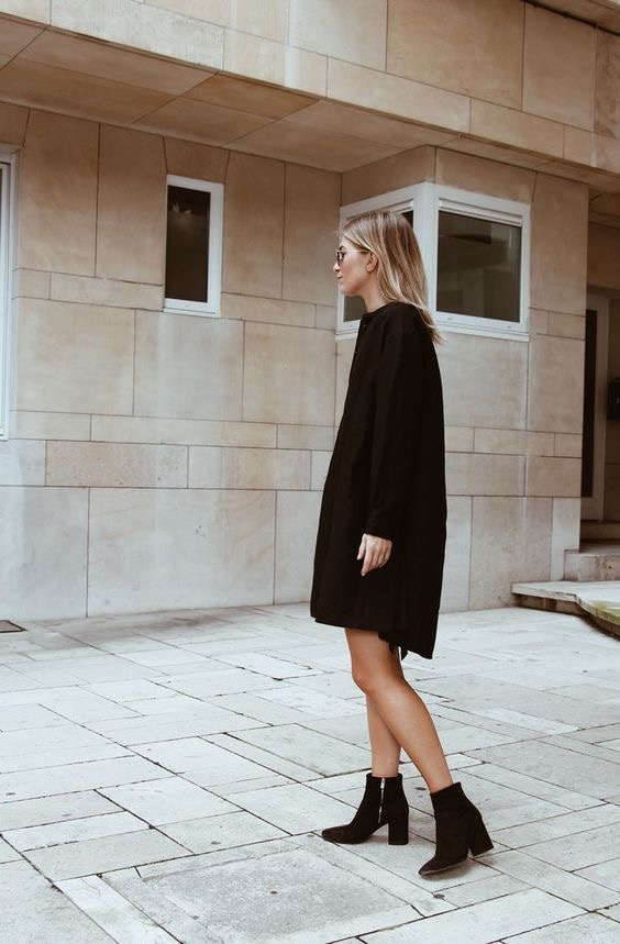 I am loving ankle booties with a dress and tights: