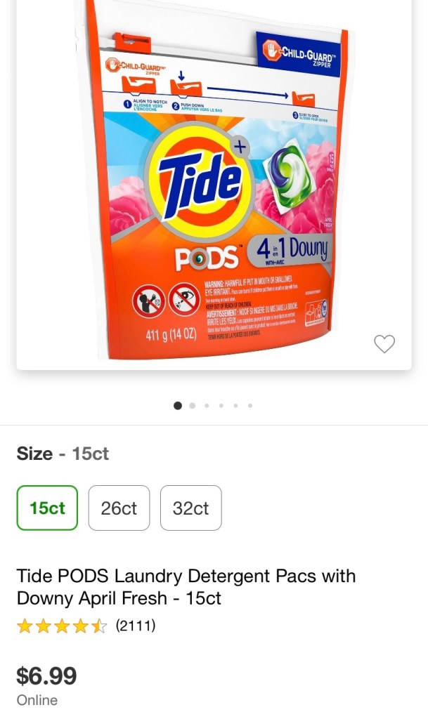 6. Tide Pods: These are so easy…..why have I been using two separate liquids all this time??? I also love Downy so this was a no brainer for me.