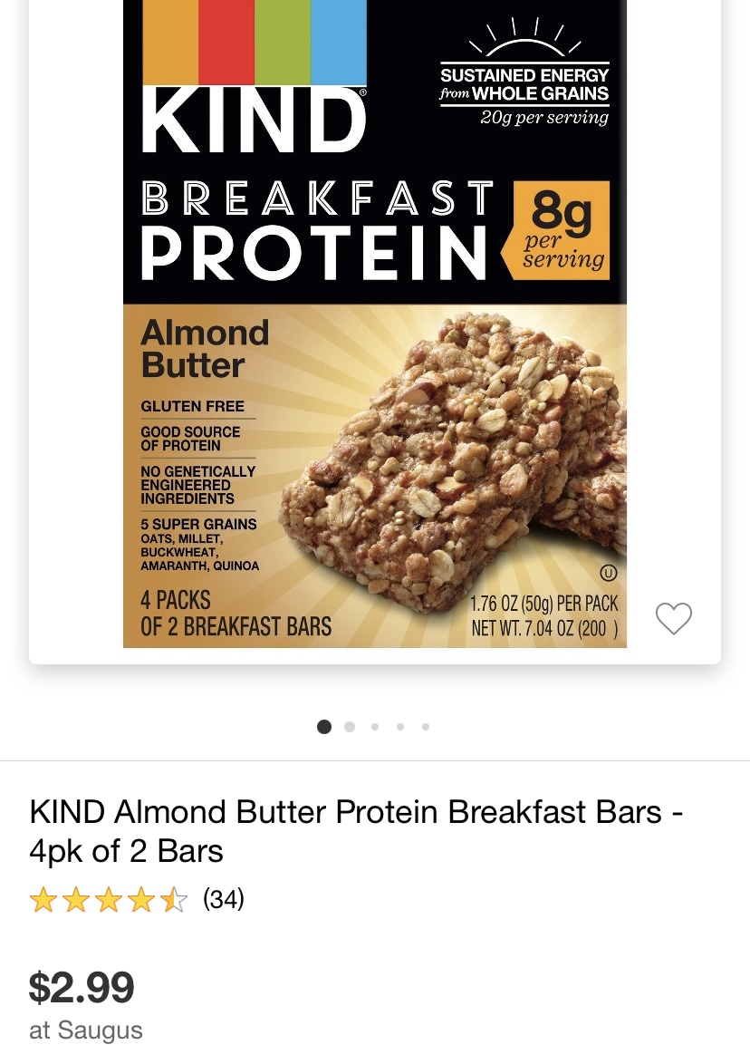 3. Kind Protein Bars: I love this flavor with the almond butter for a grab and go breakfast….especially on the way to spin class.