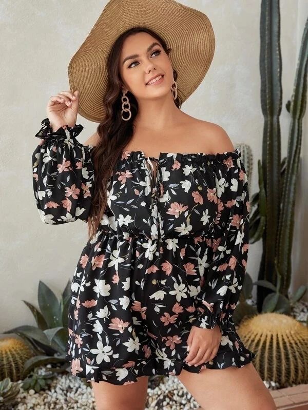 - Long sleeve floral romper: