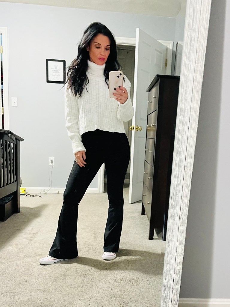 - Chunky sweaters and flared pants: Super comfy and perfect for business casual looks.