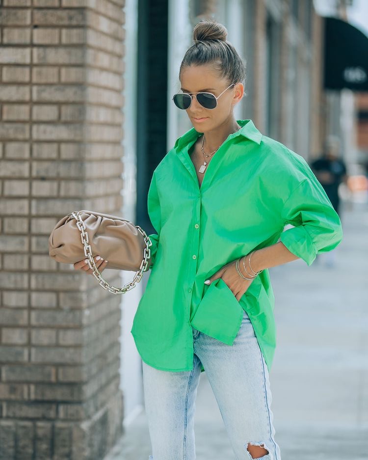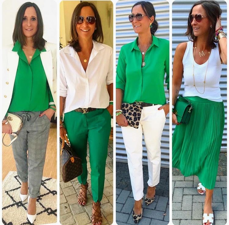 Kelly green is ALL over the place and I could not be more thrilled. I have green eyes so I have always liked wearing this shade of green. However, I also love this shade because it is universally flattering. Literally all skin tones and hair colors look amazing in this shade. Here are some of my favorite outfit inspirations with the shade currently trending.