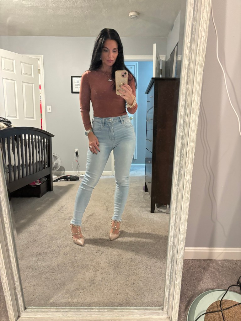 7. Pumiey Long Sleeve Tees: This is a great layering piece and a Skims dupe. You can find on Amazon.